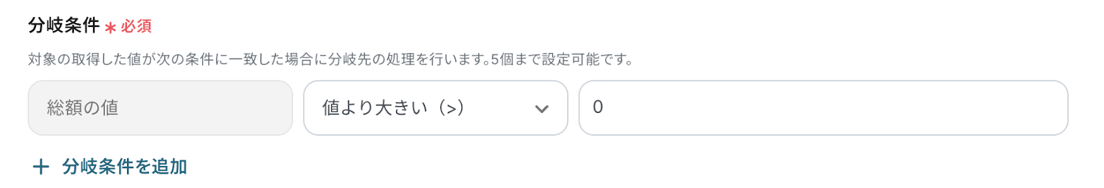 3.分岐条件を「総額の値が0より大きい 」に設定します。