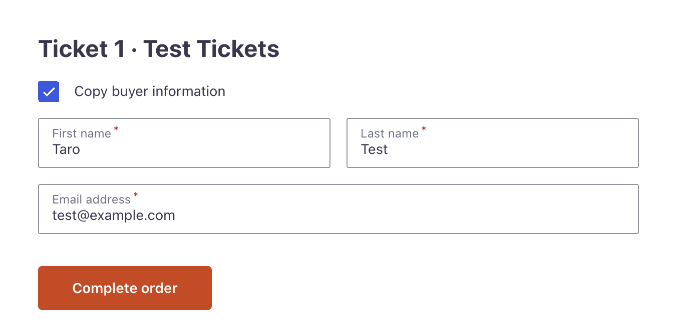 事前準備としてEventbriteでイベントを作成し、参加者を登録しておきましょう。 今回はテスト用に、以下の内容で登録しました。
