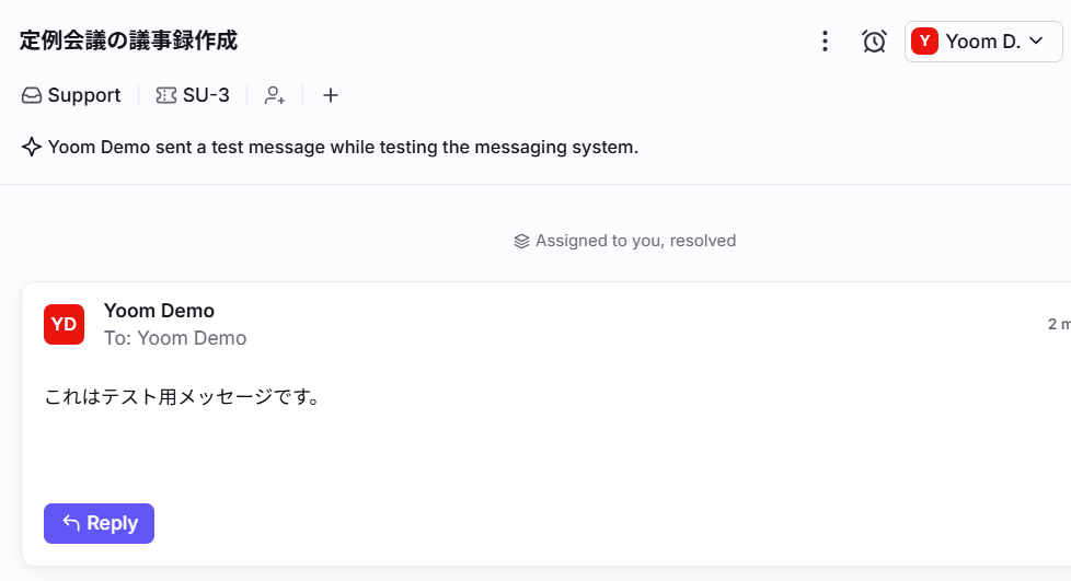 - 設定を終えたら、Frontの指定したConversationでテスト用のメッセージを送信してください。