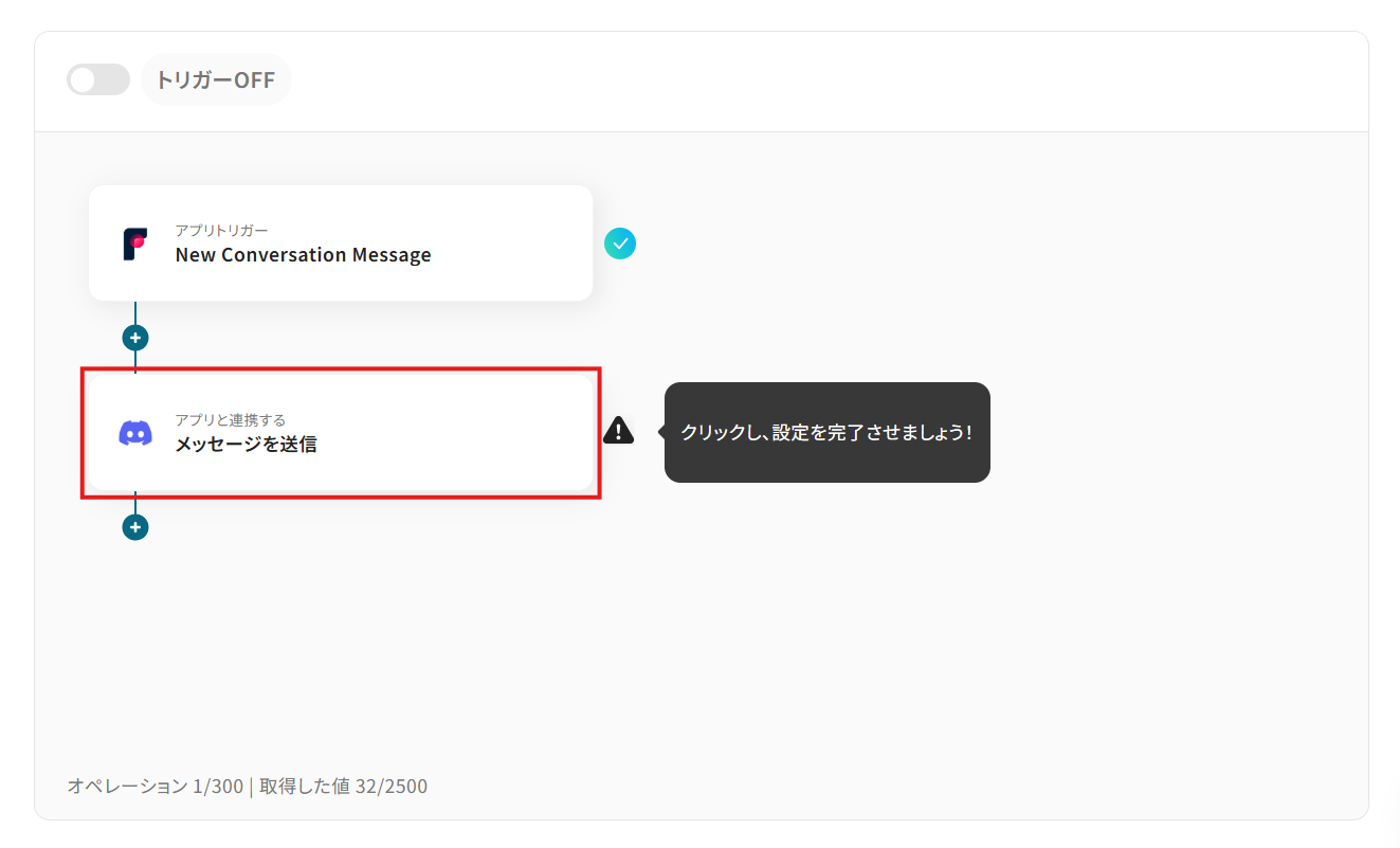 この記事では、先程ご紹介した「FrontでNew Conversation Messageを受信したら、Discordに通知する」フローを作成します。