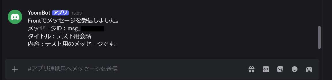 それでは、Frontでメッセージを受信した旨をDiscordに通知しましょう。
