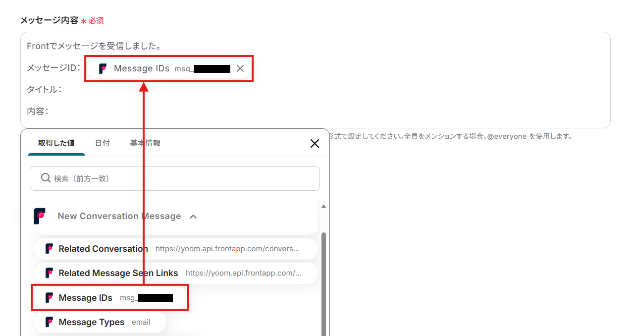 - 動的な値と固定テキストを組み合わせて、通知する「メッセージ内容」を設定しましょう。