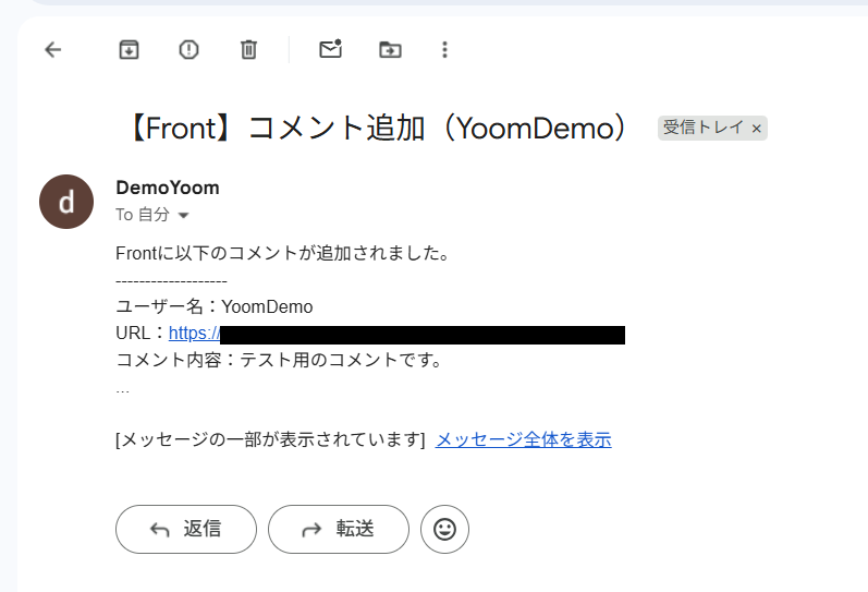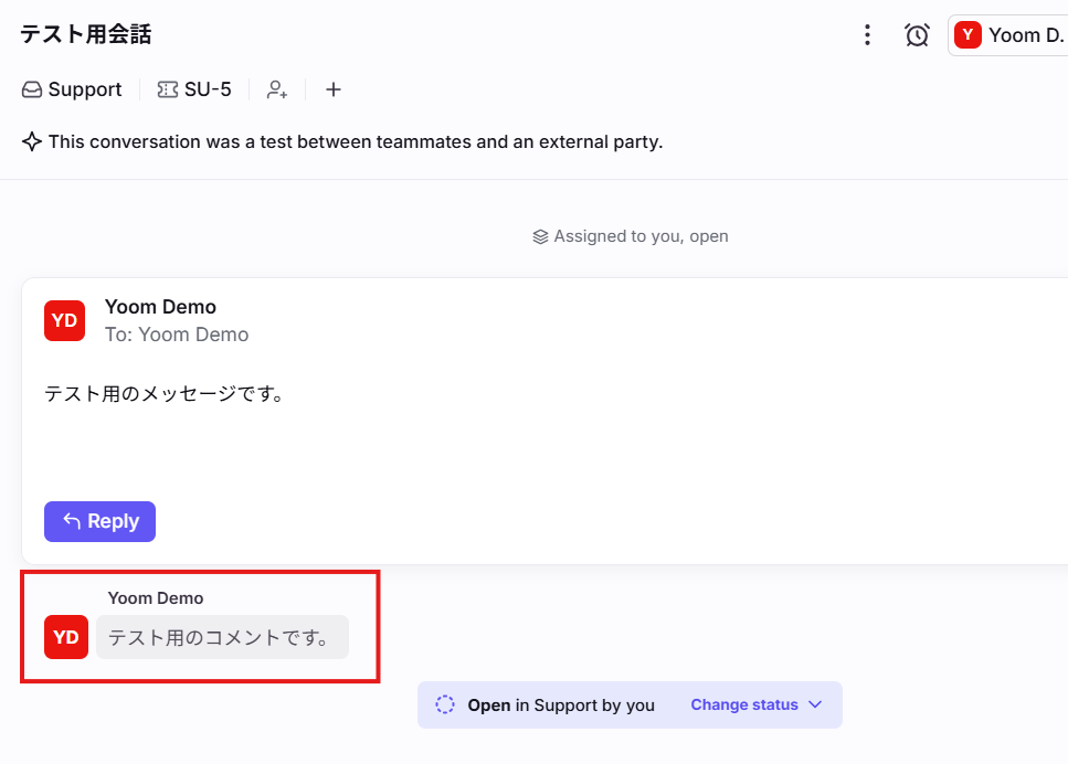 - 設定を終えたら、Frontの指定したConversationでテスト用のコメントを送信してください。