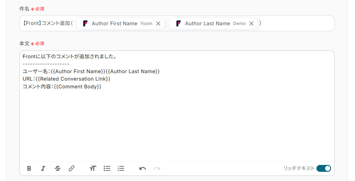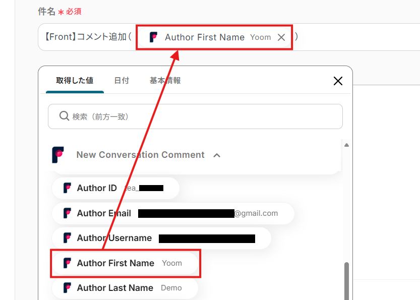 それでは、Frontから取得したコメント情報を基に、Outlookで送信するメールの内容を設定しましょう。