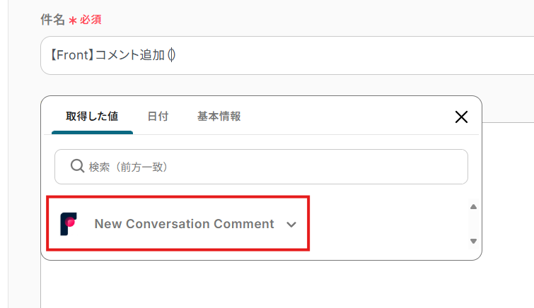 A:Frontのトリガーアクションとしては「New Conversation Message(新しい会話メッセージの受信)」と「New Conversation Comment(会話メッセージへのコメントの受信)」の二つが用意されています。