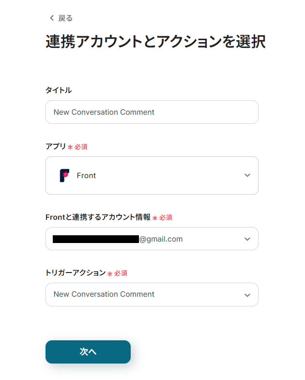 複数のアカウントと連携している場合には、このフローで用いるアカウントをプルダウンから選択してください。