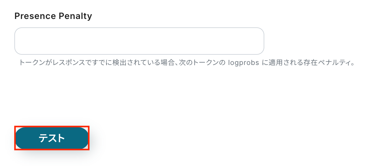 入力が完了したら「テスト」をクリックして、設定した内容でコンテンツが生成されるか確認しましょう。