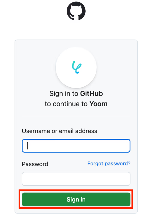 以下の画面が表示されたら、ユーザー名またはメールアドレスとパスワードを入力し、「Sign in」をクリックしてください。