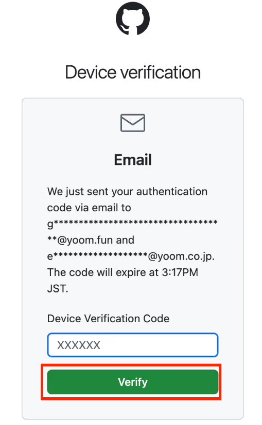 認証コード入力画面が表示されます。 登録メールアドレスに届いた6桁のコードを入力し、「Verify」をクリックしてください。