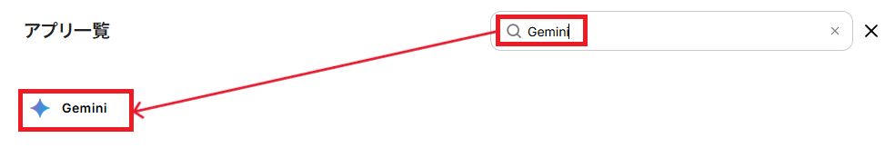 アプリ一覧の検索窓からGeminiを検索し、クリックします。
