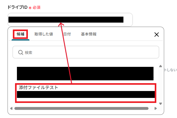 「ドライブID」は、サイトIDを設定することで選択可能となります。 こちらも候補から設定してください。