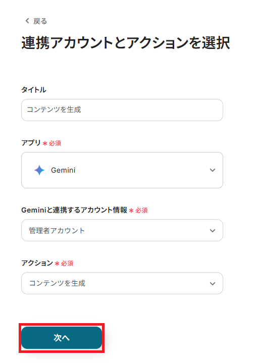 ステップ6:Geminiのアクション設定