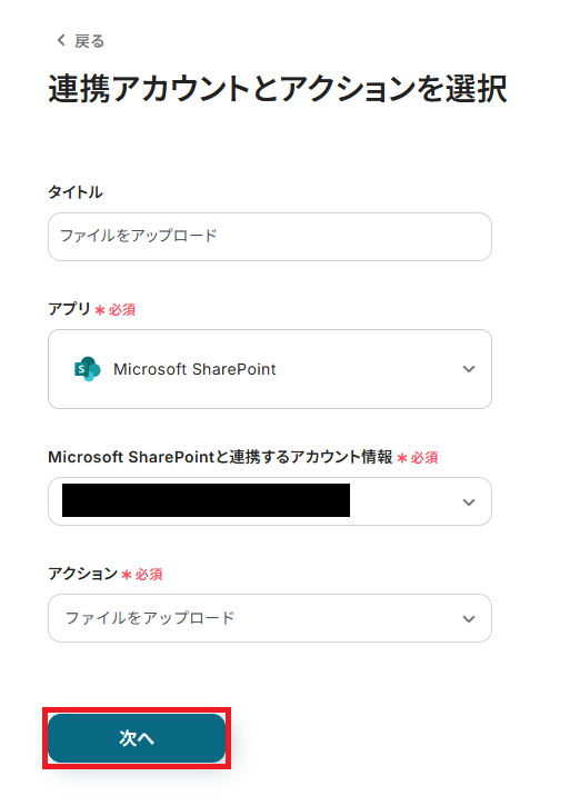 ステップ8:Microsoft SharePointのファイルのアップロード設定