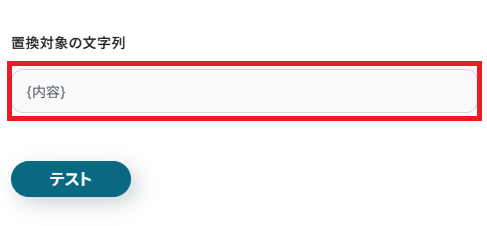 置換後の文字列を入力します。 「置換対象の文字列」は、作成した報告書の置換部分が記載されています。 「置換後の文字列」には、取得した値からGeminiで生成されたコンテンツを選択しましょう。 設定が完了したら、「テスト」をクリックしてください。