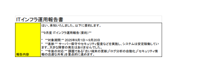 この自動化は、Gmailで特定のファイルを受信したことをきっかけに、Geminiがその内容を要約し、結果を自動でMicrosoft SharePointに格納するため、報告書などの内容確認と整理にかかる時間を削減し、チーム内の情報共有をスムーズに します。