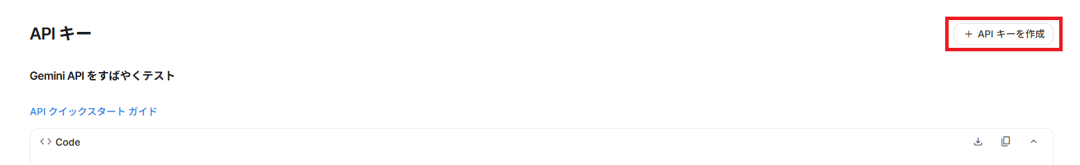 利用規約やプライバシーポリシーの確認後、右上の「+ APIキーを作成」を選択してください。