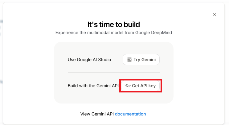 Geminiに移動するので、「Get API Key」をクリックします。