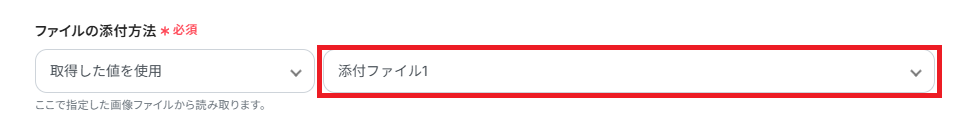 「ファイルの添付方法」はデフォルトで、先ほど添付したファイルが対象になっています。