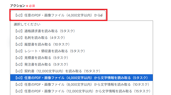 ※YoomのOCR機能では、アクション記載の規定の文字数を超えるデータや、文字が小さすぎる場合に正しく読み取れないことがあります。 文字数や文字の大きさには少し余裕を持たせてご利用ください。