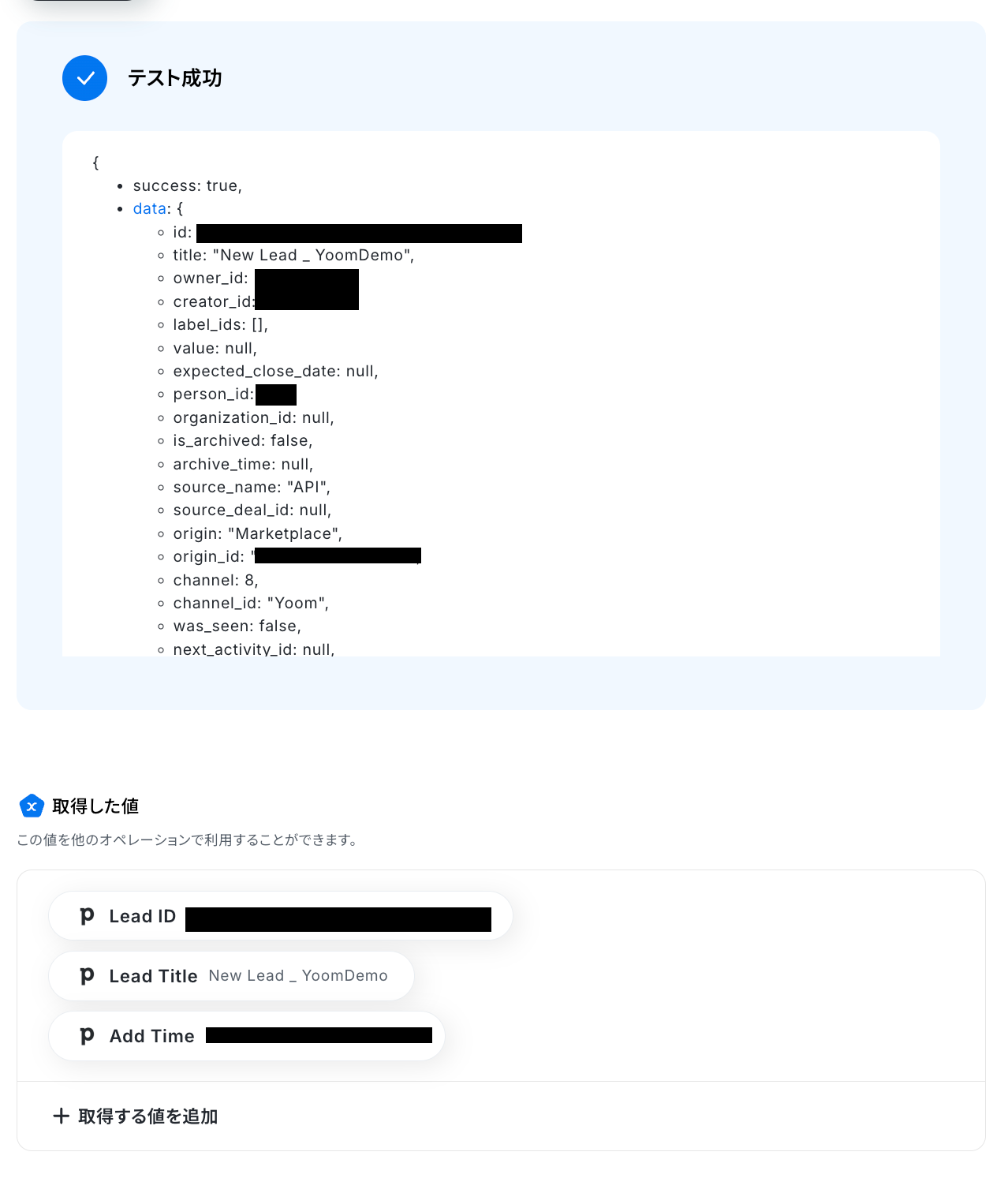 テストに成功しました!Pipedrive上にリードが追加されています。