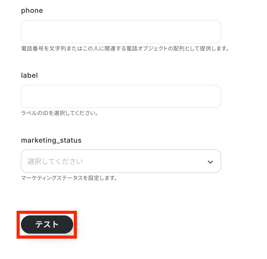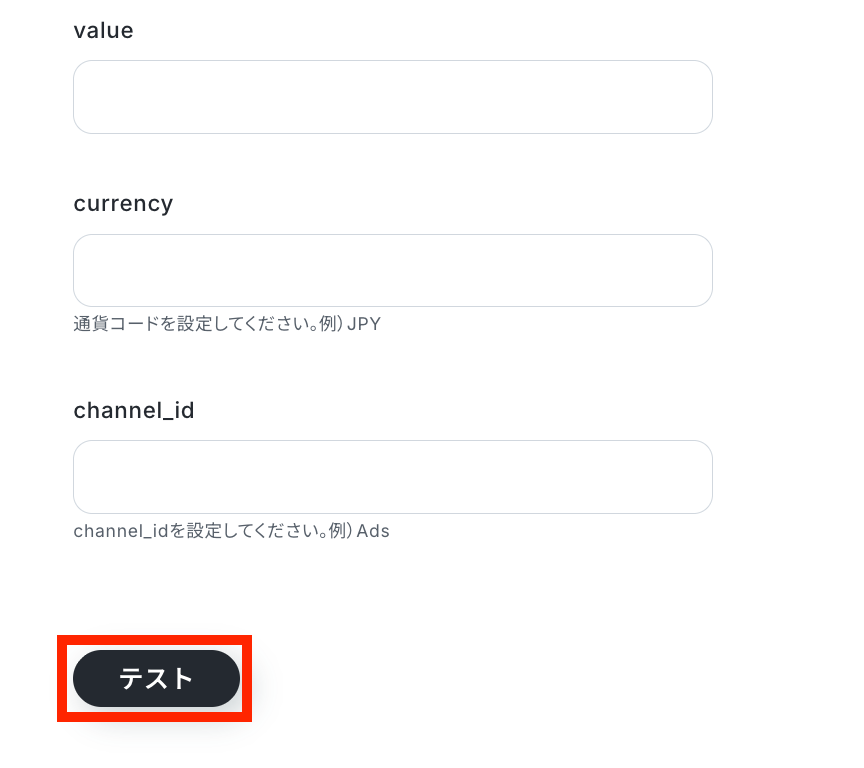 任意でそのほかの設定も行い、全ての設定が済んだらテストを実行します。
