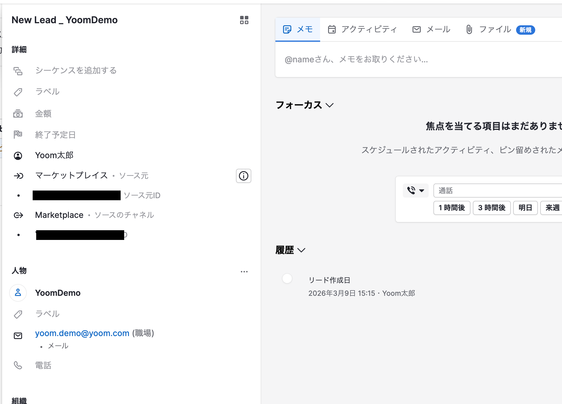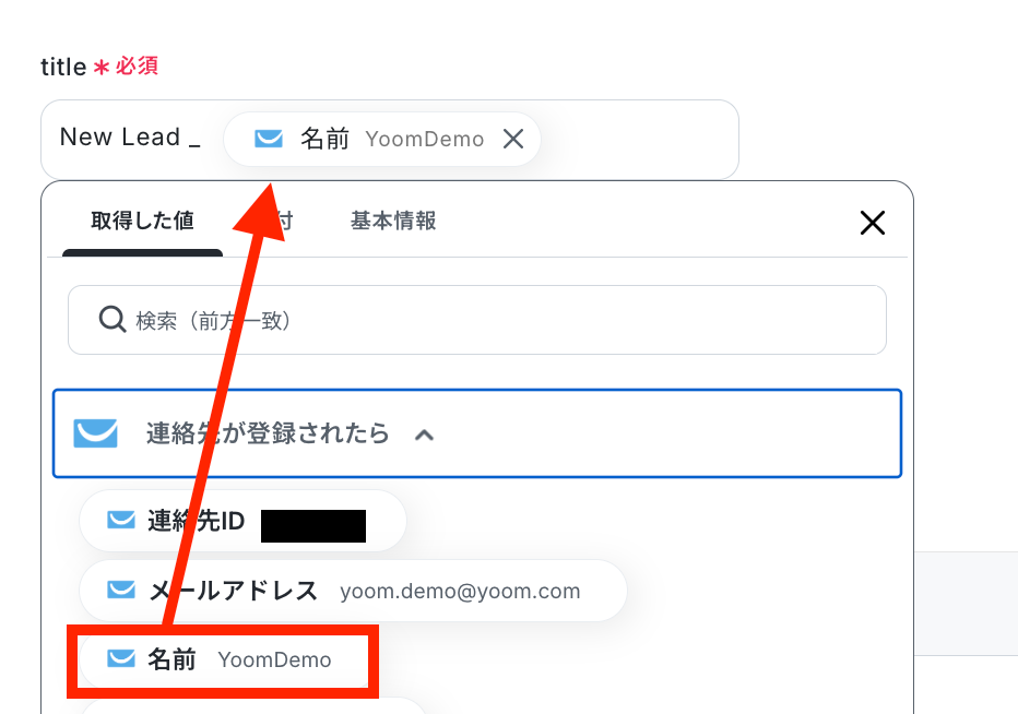 - 同様に「リードを作成する」アクションでは、リードのタイトルや担当者、ステータスなどを、前のステップで取得した情報や固定のテキストを用いて任意の内容に設定することが可能です。