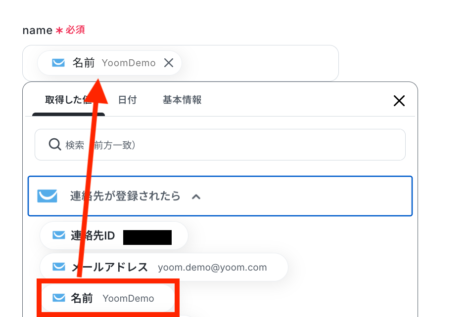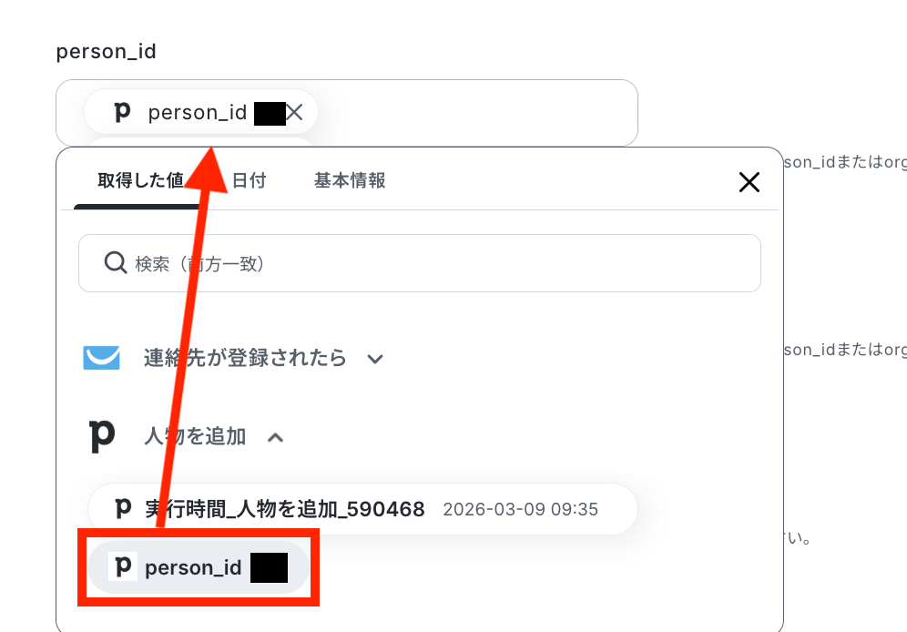 「person_id」も同様に、ステップ4で取得した値を選択します。