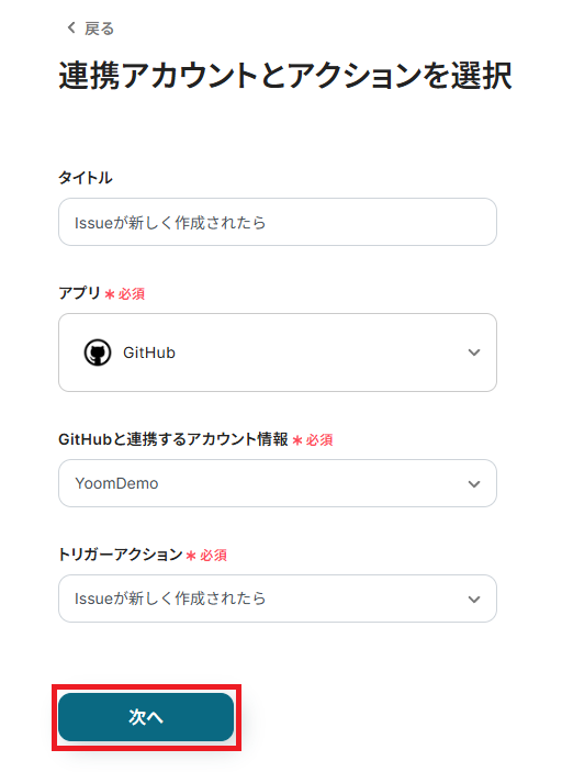 まず、「Issueが新しく作成されたら」をクリックしてください。