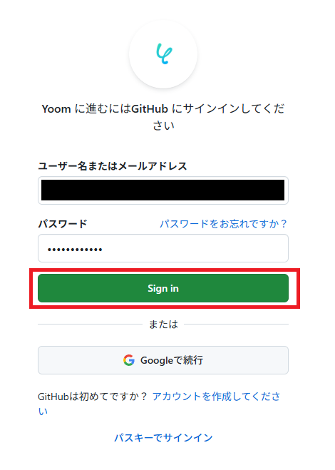 ログイン画面に切り替わったら、メールアドレスとパスワードを入力し、「Sign in」をクリックしてください。