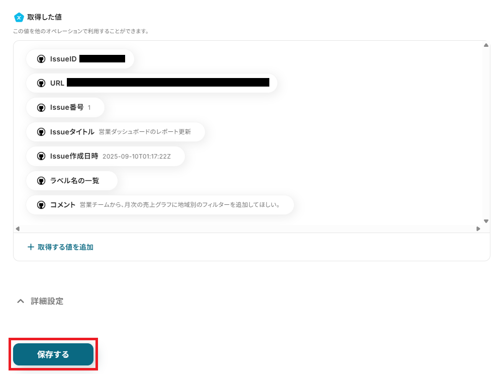以上が、GitHubでIssueが作成されたら、MemにSaveするフローの連携手順になります!