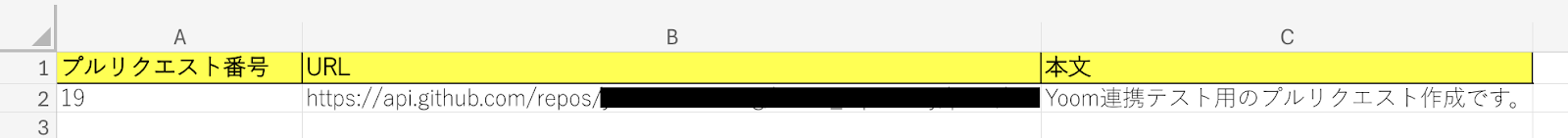 このように取得した値を使って設定することで、GitHubで作成されたプルリクエストの情報をそのまま引用し、Microsoft Excelにデータを追加できるようになります。