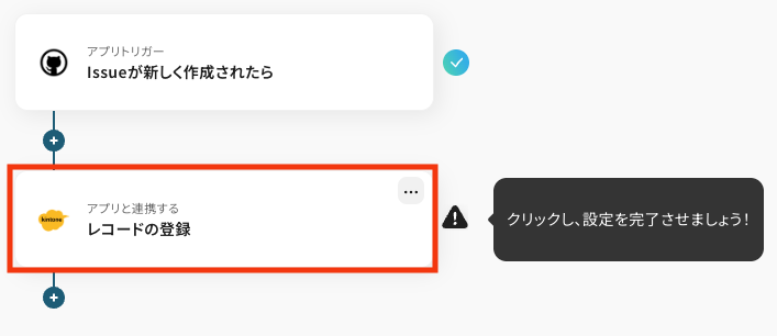 この連携は、特定条件に合致するGitHubのデータのみをkintoneに連携する分岐処理を含むパターンです。 GitHubで特定条件に合うIssueが登録されたタイミングで、kintoneに自動でレコードを追加し、特定の情報だけをkintoneに連携したい場合におすすめです。