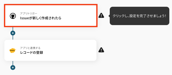 GitHubで新規のIssueが登録されたら、kintoneのレコードにも登録するフローです。