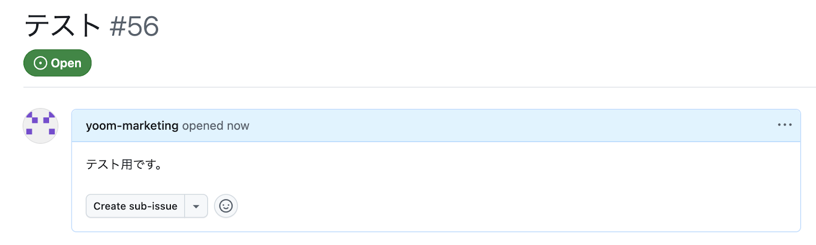 ステップ3:GitHubのトリガー設定 GitHub連携を設定するには、あらかじめGitHub上でIssueを1件以上作成しておく必要があります。 今回は以下のような内容のIssueを作成しました。