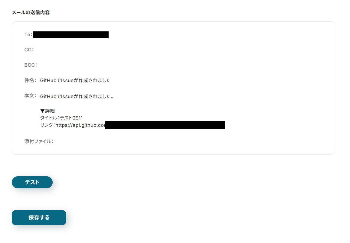 テストに成功したら、Outlookにメールが送信されたか確認をしてください! 確認後、「保存する」を押します。 以上で、「GitHubでIssueが作成されたら、Outlookでメールを送信する」 フローの完成です。