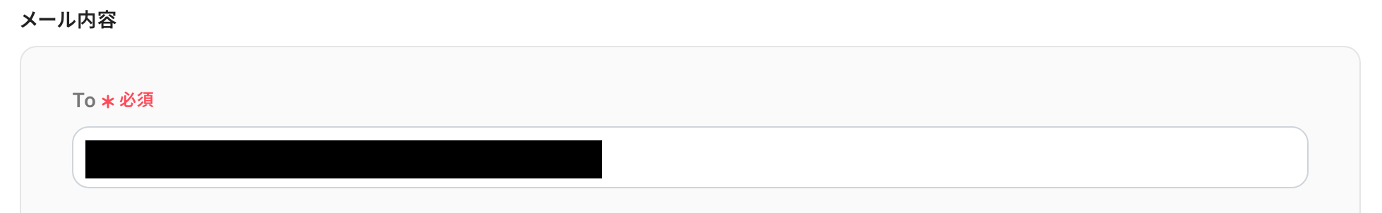 続いて、「メール内容」 の必須項目を設定しましょう! 「To」には直接入力してください。 複数の宛先を設定することも可能です。