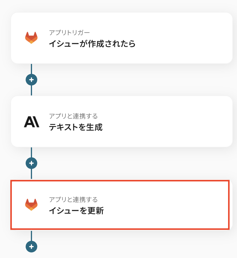 ■概要 Notionで管理しているタスクや情報を、手作業でGitLabのイシューに転記する作業は手間がかかるだけでなく、情報の抜け漏れといったミスも発生しがちではないでしょうか。 このワークフローを活用すれば、Notionのデータベースに新しいレコードが追加されると、AIがイシューの内容を自動生成し、GitLabにイシューを作成することが可能です。 NotionとGitLab間の連携を自動化し、開発ワークフローを効率化します。 ■このテンプレートをおすすめする方 ・Notionでタスク管理を行い、GitLabで開発を進めている開発チームの担当者の方 ・NotionとGitLab間の情報転記作業に手間を感じ、自動化したいプロジェクトマネージャーの方 ・開発タスクの起票漏れや記載内容のばらつきを防ぎ、業務品質を向上させたい方 ■注意事項 ・Notion、GitLabのそれぞれとYoomを連携してください。 ・分岐はミニプラン以上のプランでご利用いただける機能(オペレーション)となっております。フリープランの場合は設定しているフローボットのオペレーションはエラーとなりますので、ご注意ください。 ・ミニプランなどの有料プランは、2週間の無料トライアルを行うことが可能です。無料トライアル中には制限対象のアプリや機能(オペレーション)を使用することができます。 ・トリガーは5分、10分、15分、30分、60分の間隔で起動間隔を選択できます。 ・プランによって最短の起動間隔が異なりますので、ご注意ください。 ・オペレーション数が5つを越えるフローボットを作成する際は、ミニプラン以上のプランで設定可能です。フリープランの場合はフローボットが起動しないため、ご注意ください。