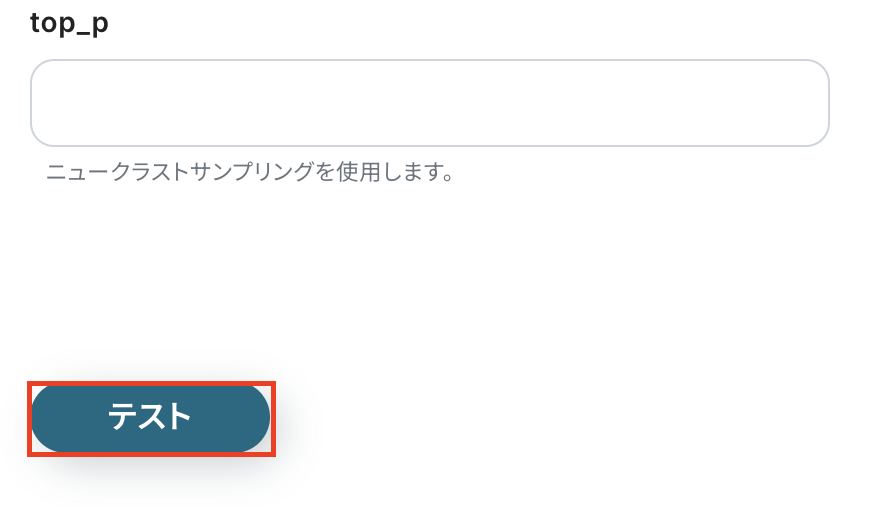 入力が完了したら「テスト」をクリックして、設定した内容でテキストが正しく生成されるか確認しましょう。