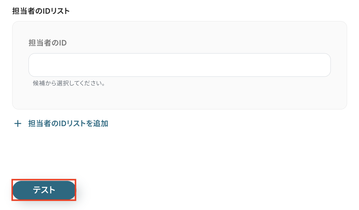 入力が完了したら、設定内容とトリガーの動作を確認するため「テスト」をクリックします。