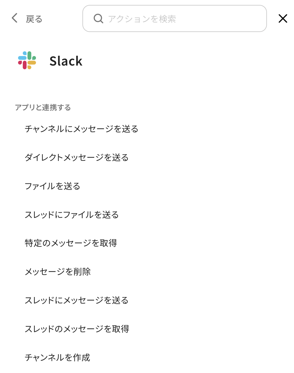 設定したアプリのアクション項目から「メッセージを送信」などの通知系アクションを選択することで、解析結果をもとに通知を行うフローが構築できます。 基本的なフローボットの作成方法は、以下のヘルプページをご確認ください。