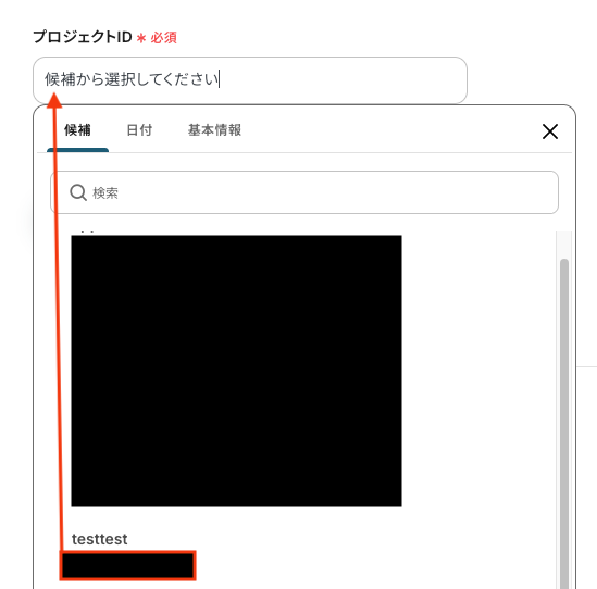 プロジェクトID 入力欄をクリックすると連携が有効になっているアカウントから候補が表示されるので、対象の項目を選択しましょう。