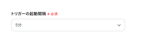 トリガーの起動タイミングは、5分、10分、15分、30分、60分のいずれかで設定できます。ご利用プラン によって、設定できるトリガーの最短間隔が違うので、その点は要チェックです。 なお、基本的にはそのプランの最短の起動間隔にしてお使いいただくことをおすすめします。