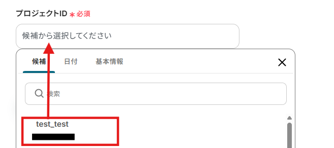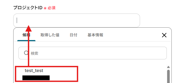 プロジェクトIDは以下のように表示される候補から選択しましょう。