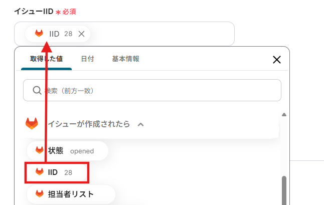 イシューIDは以下のようにGitLabから取得した値を用いて入力しましょう。