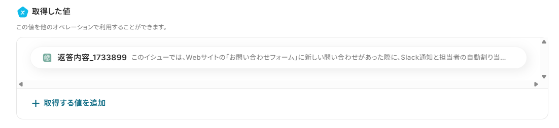 取得した値を活用することで、固定値ではなく、トリガーが実行されるたびに最新の情報が反映できます。