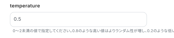 一方、値が低いと、より一貫性があり、明確で安定した出力を得ることができます。