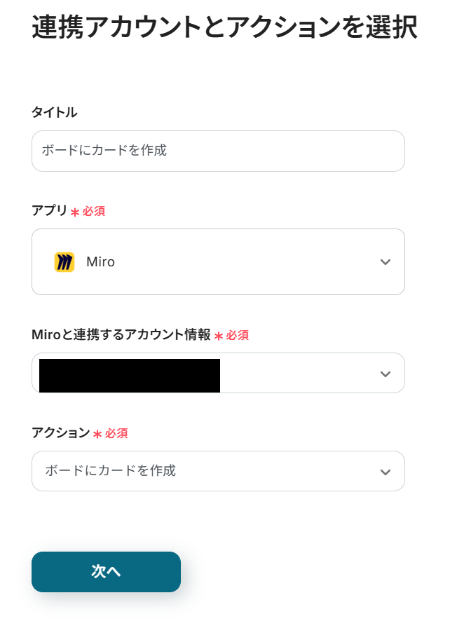 その場合フローボットの「テキストからデータを抽出する」アクションを削除し、Miroのアクションを設定してください。