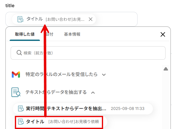 ラベルのフィールドをクリックし、連携したいラベルを候補から選択します。