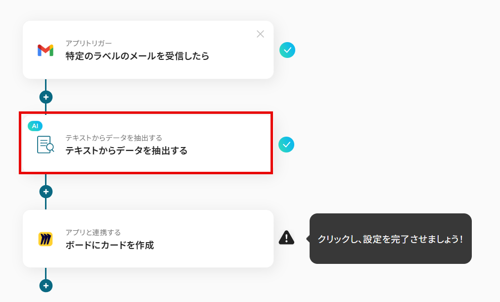 このメールからテキストを抽出し、Miroのボードにカードをする流れです。