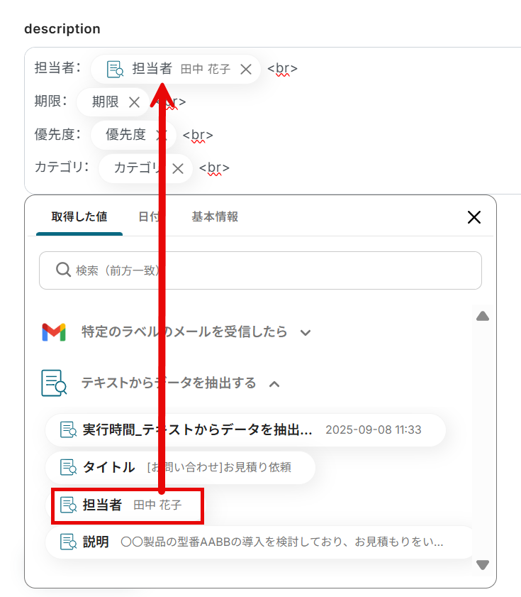 メールから必要な情報だけを抽出してカード化することも可能で、手作業によるコピー&ペーストの手間とミスを削減します。